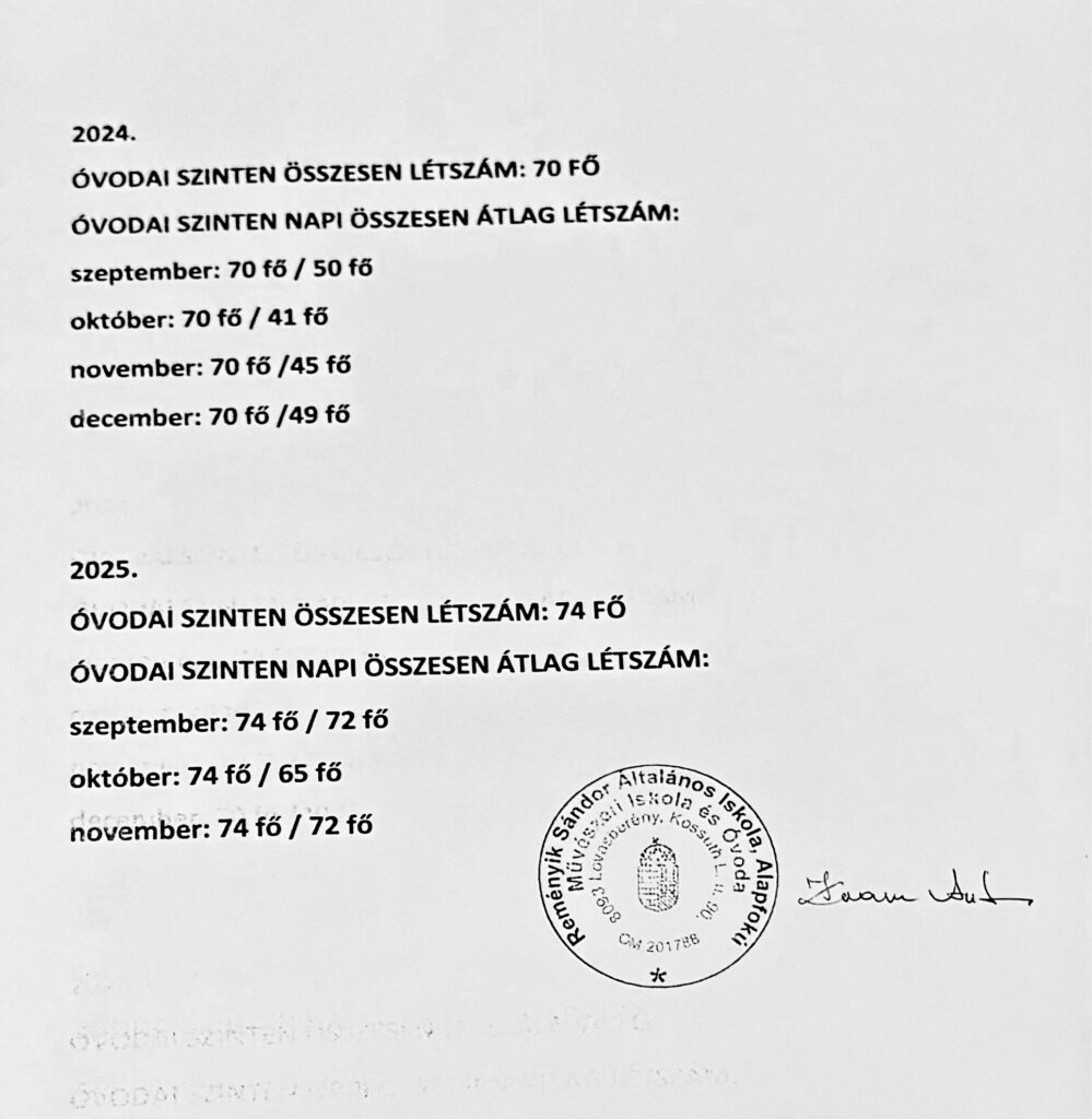 - 70-74 fős óvodában havonta 18–23 fővel csökkent,